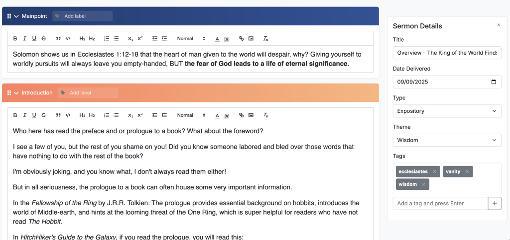 Developed for Bible teachers and preachers to store, write, and search sermons